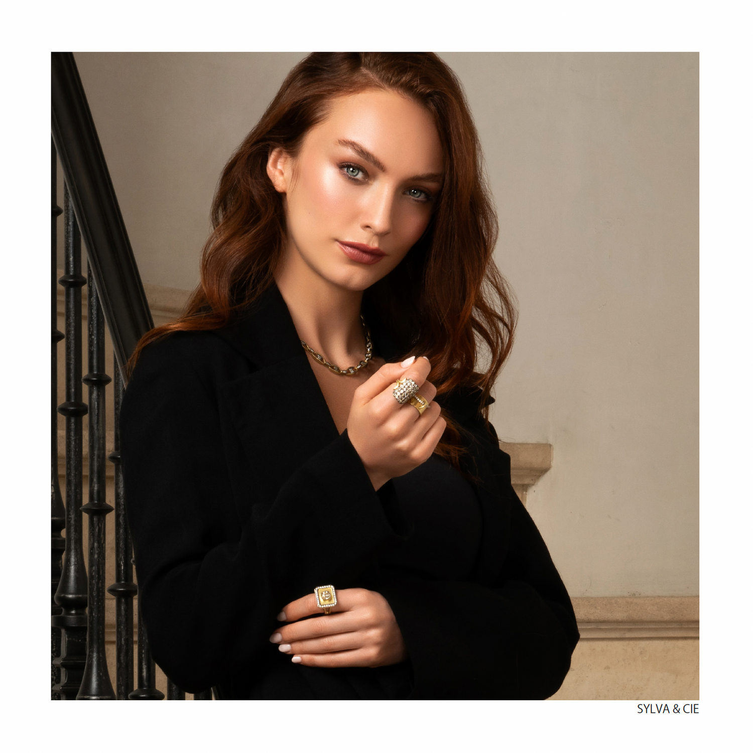 Caroline Ellen Caroline Ellen Flat Gold Bangle with Star Set Diamonds Caroline Ellen Star Set Rounded Hinge Bangle Caroline Ellen Star Rounded Hinge Bangle with Narrow Single Row Cognac Pave Diamonds