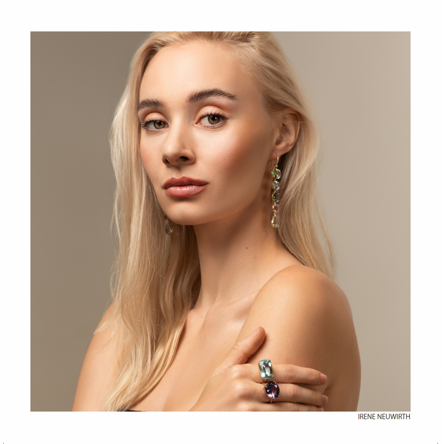 One-of-a-KindA radiant celebration of color and craftsmanship, these one-of-a-kind earrings by Irene Neuwirth feature an exquisite collection of green tourmaline, aquamarine, and kunzite, set in 18k yellow gold and suspended from diamond pave hooks. Each gemstone is hand-selected for its unique beauty, creating a playful yet elegant composition that’s both bold and refined. A true statement of individuality and modern luxury.