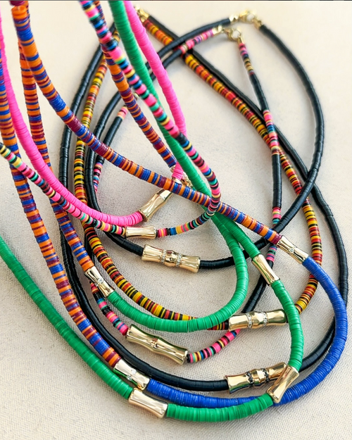 14K Yellow Gold Small Ingot with Soccer Ball Symbol on Gemstone and Glass beaded bracelet, stretch cord, 7.5"