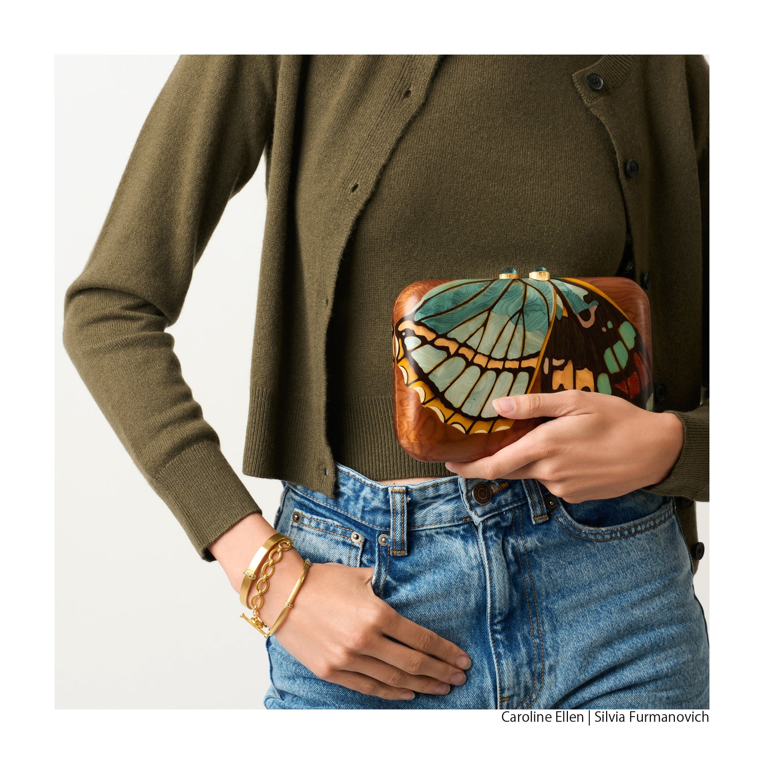 Silvia Furmanovich Silvia Furmanovich Marquetry Butterfly Clutch with London Topaz