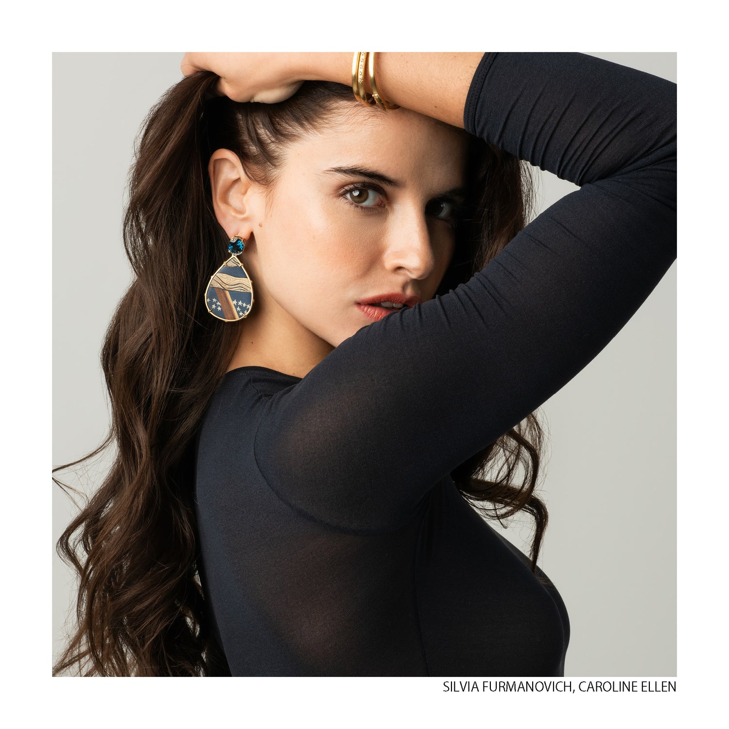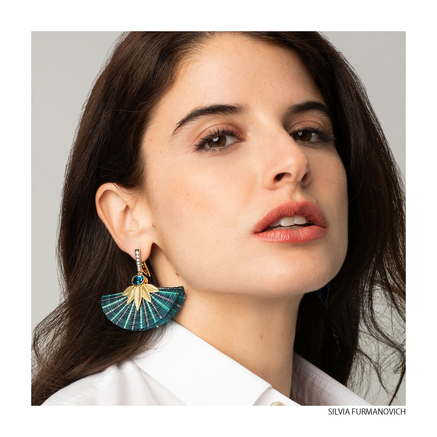 Silvia Furmanovich Silvia Furmanovich Marquetry Floral Bird Earrings with Diamonds and Blue Stone Silvia Furmanovich Half Moon Horse Mane Earrings with Diamond and London Topaz