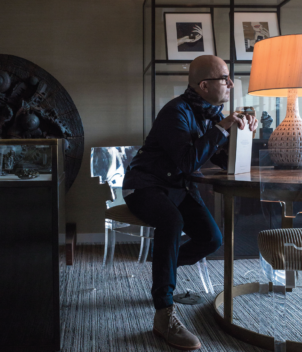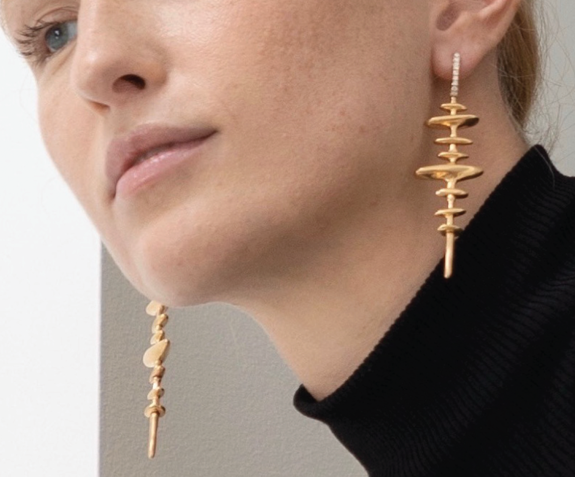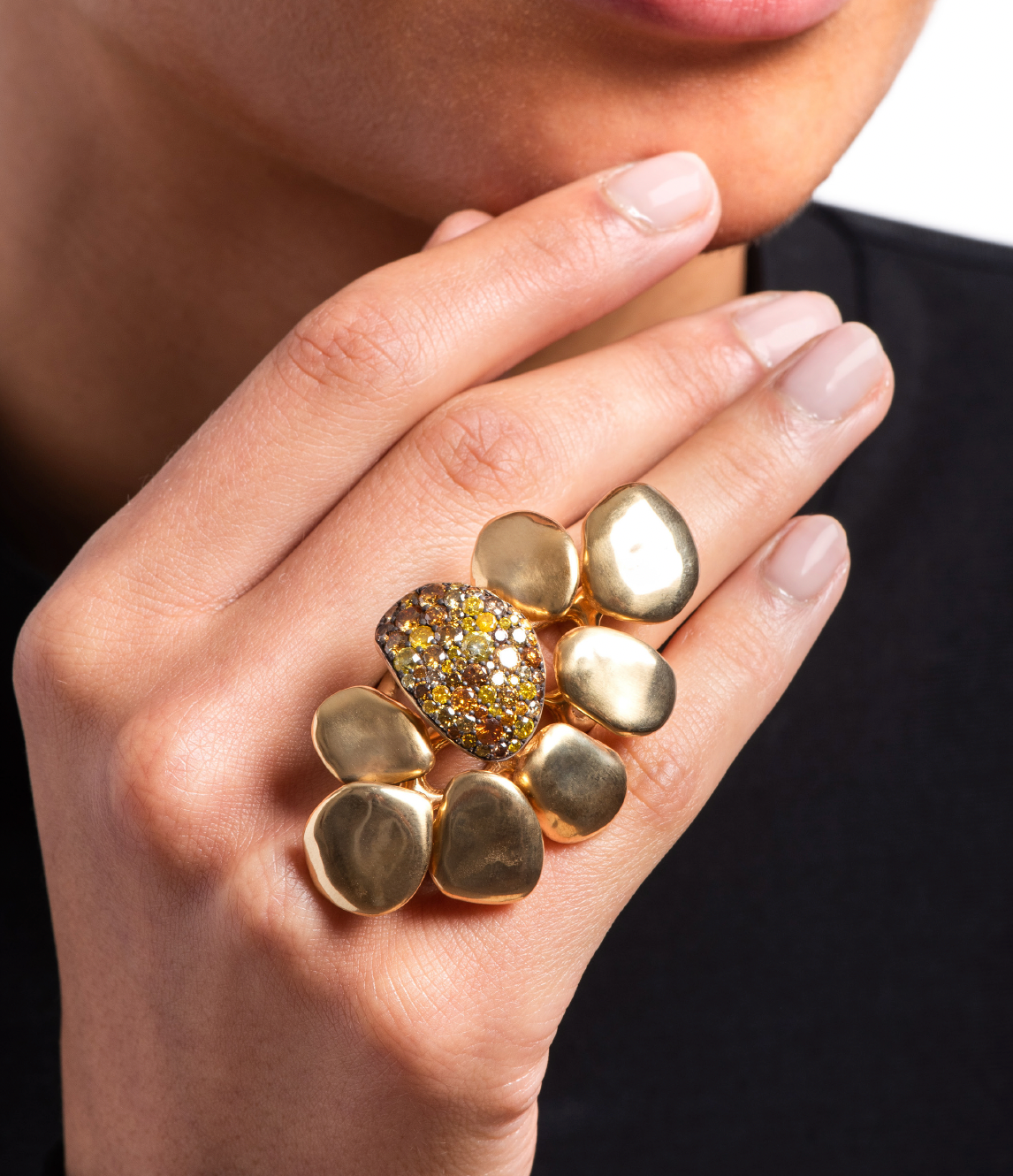 After thirty years creating unique pieces for private clients and global brands, he released the first Continuum collection. Designed alongside and in dialogue with Vram's one-of-a-kind works, Continuum incorporates unexpected sculptural forms, seamless pavé settings, swooping surfaces, and kinetic elements to evoke a universe in flux. Each work demands to be observed, explored, and experienced.