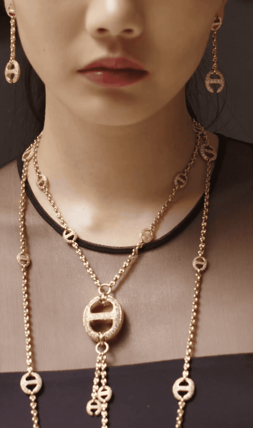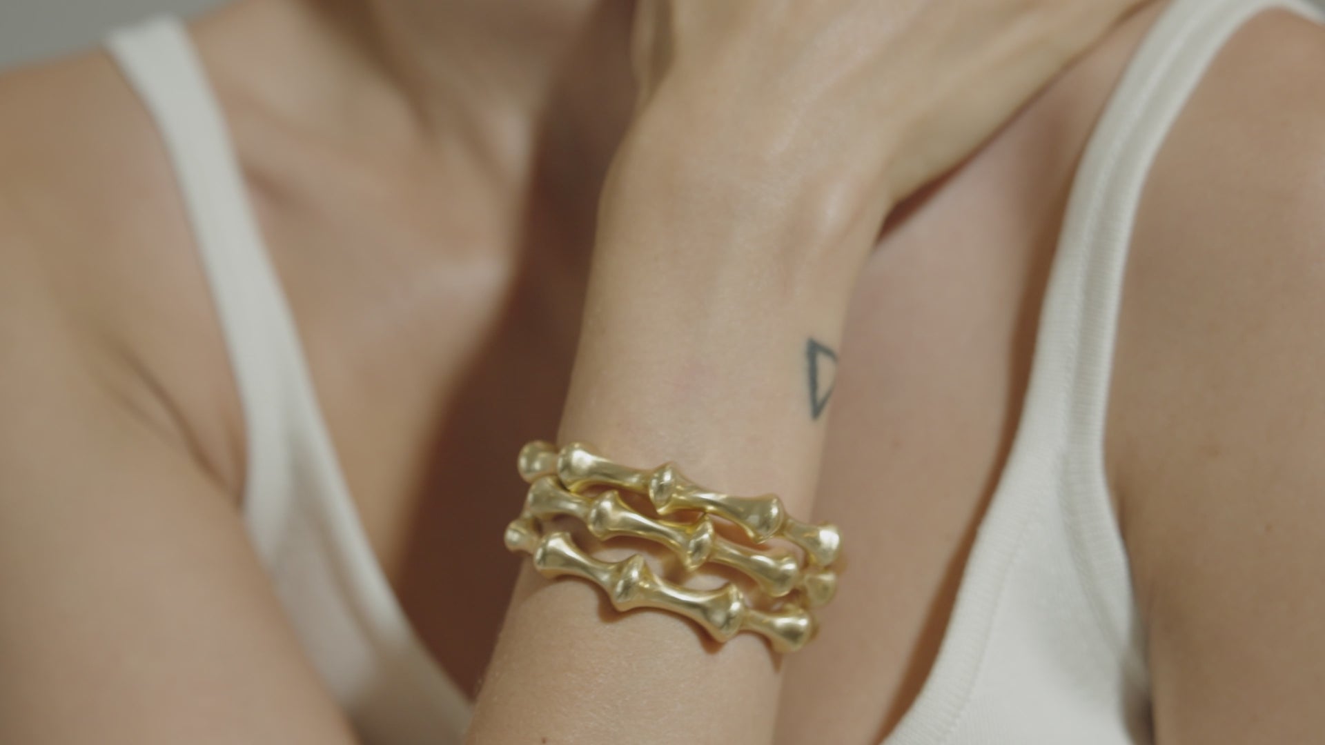 Los Angeles-based Hoorsenbuhs [horse-en-boo] was founded in 2005 by photographer-turned-jewelry designer, Robert Keith, and his partner, Kether Parker. Drawing inspiration from ‘70s-era jewelry, Hoorsenbuhs creates substantial gold pieces that blend vintage inspiration with contemporary craftsmanship. Their iconic tri-link is now Hoorsenbuhs’ signature emblem, symbolising strength, quality, and continuous opulence.