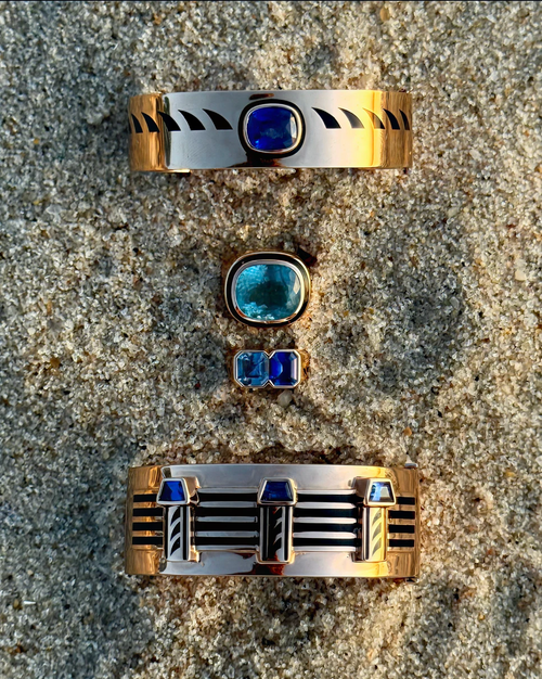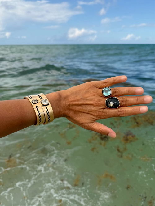 Sara Beltran, a jewelry designer hailing from El Paso, draws inspiration from her travels and deep love for the beach, ocean, and nature. Designed in her New York studio, her collections showcase a fusion of cultural influences and natural materials - like coral, shark tooth, and coquito with custom alloys of gold adorned with semi-precious and precious stones.