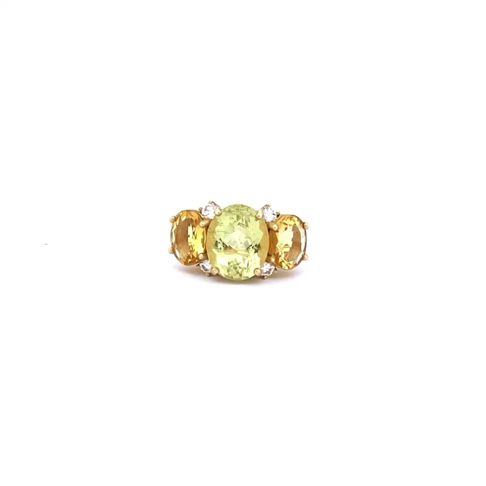 This one-of-a-kind 'Gemmy Gem' ring from Irene Neuwirth showcases a trio of glowing beryl stones set in 18k yellow gold and accented with full-cut diamonds. A bold yet elegant statement, designed to captivate from every angle.